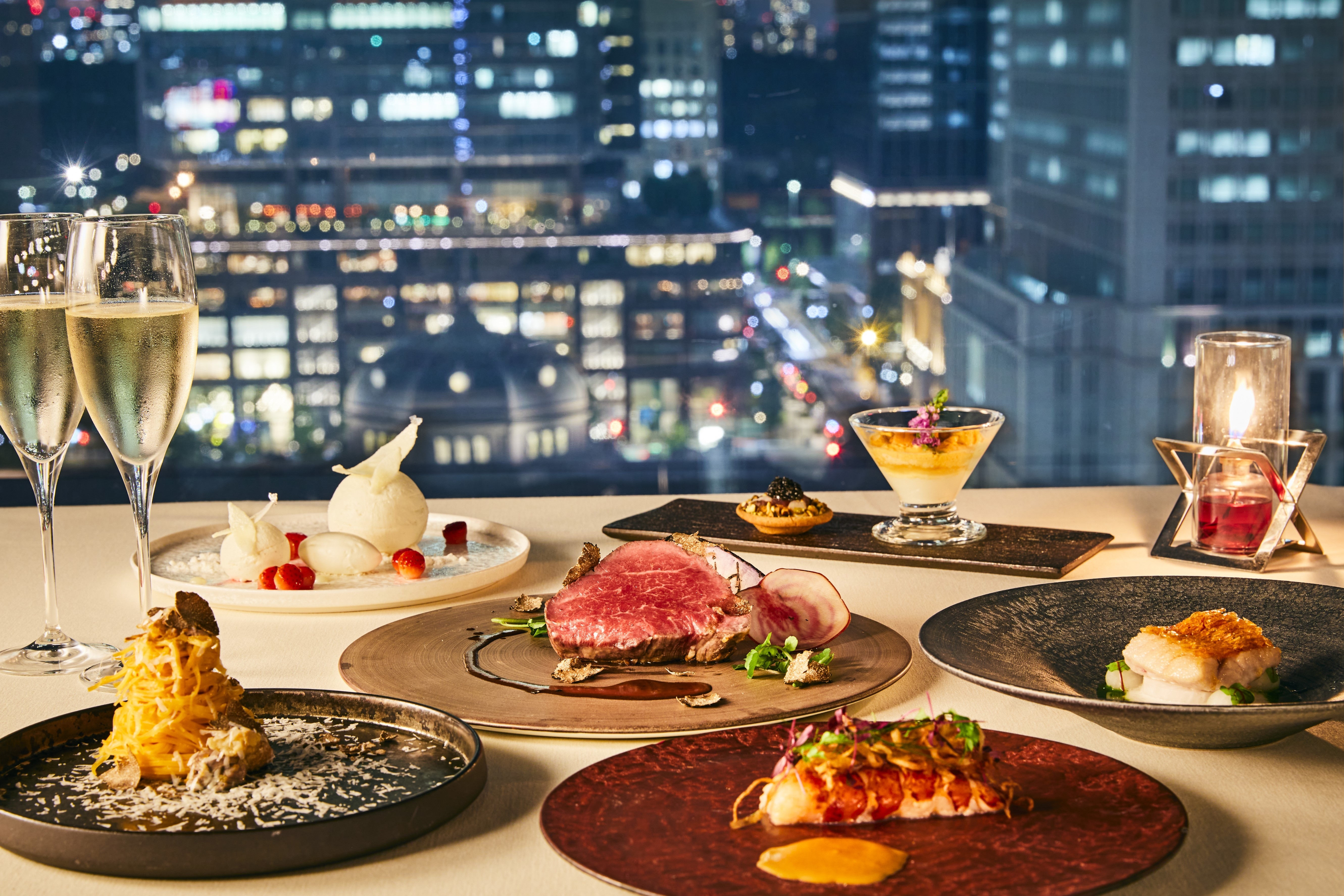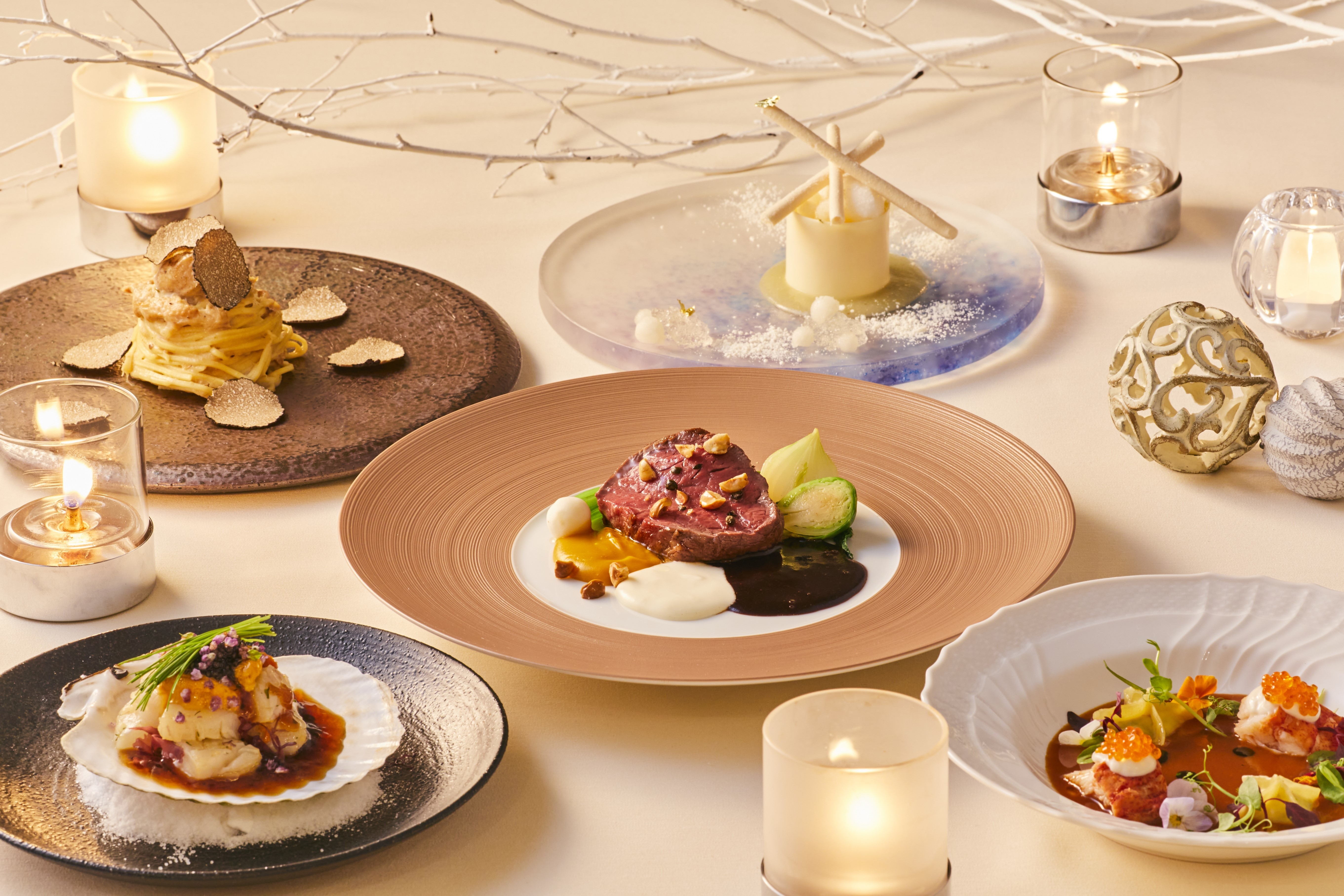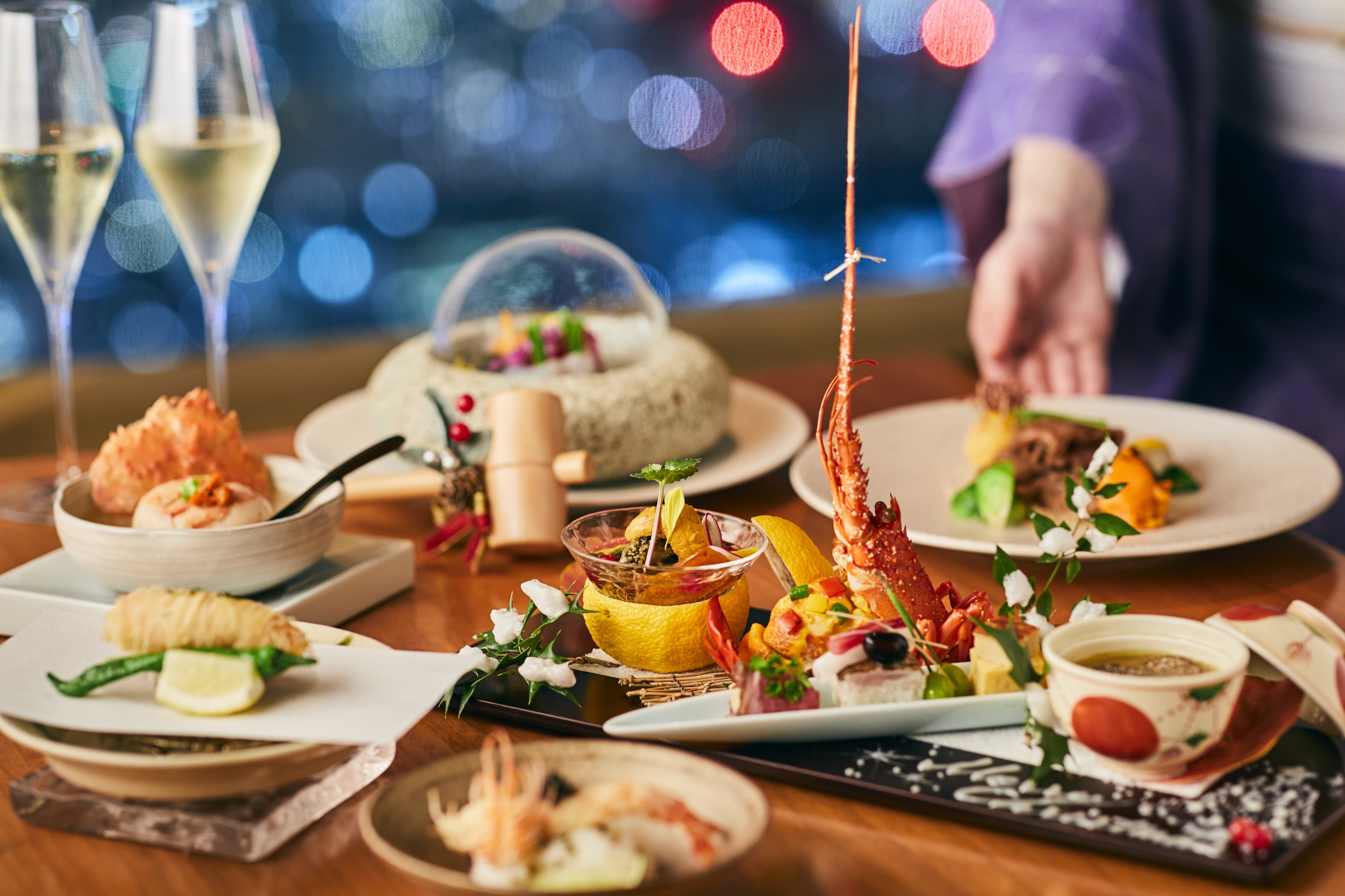 鮟肝や寒鰤、虎河豚など厳選された食材の数々を一皿一皿丁寧に仕上げた職人の技光る寿司コース。和食コースは前菜からデザートまでオマール海老や黒毛和牛などの高級食材を使用し、繊細で、見た目からもワクワクさせてくれる料理の数々をご用意いたしました。最上階42階から一望できる絶景とともにクリスマスの夜をお愉しみください。