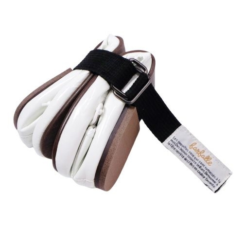シューズを半分に折ることができ、ベルトと巾着が付いているので、旅行や学校行事などにも携帯できます。もちろん、普通にバレエシューズとしても履いていただけます。