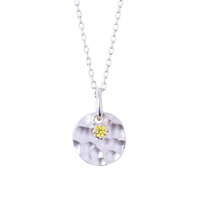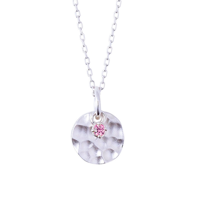 ストレートフォルムのリングにイメージカラーストーンをセットし、槌目×つや消し加工を施すことで、飾らない自然な雰囲気を表現しています。