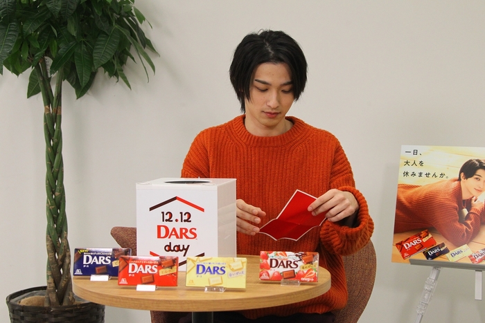 イベントの最後は、来年に向けて「2021年も皆さんに楽しんでいただけるような年にしたいし、役者として皆さんの心を動かす作品を作っていきたいです。」と前向きに語り、「ダースの日スペシャルイベント「EAT WITH EVERYONE」をご覧頂き、ありがとうございました。皆さんも忙しい日常が続くと思いますが、先ほど一緒にダースを食べた食べ方でひと粒大人を休みましょう」と笑顔で締めくくり、ダースのCMと共にエンディングを迎えました。