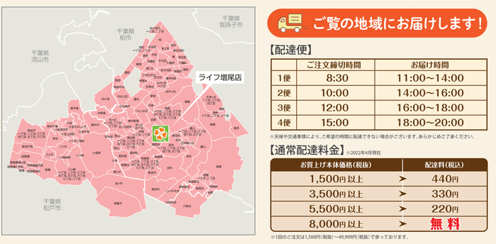 ライフネットスーパーのページをご覧いただき、お届け先が配達エリア内であれば、ご登録完了後すぐにご注文いただけます。