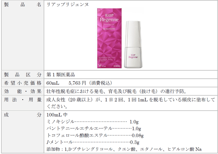 日本で唯一※2の女性用発毛成分※3ミノキシジル配合の医薬品 ~リアップリジェンヌ~