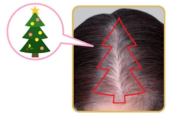 女性の壮年性脱毛症では、クリスマスツリーのような三角形に脱毛する進行パターンもみられます。