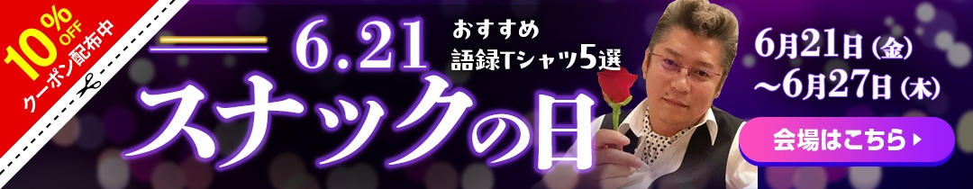 【6月21日スナックの日記念 10%OFFクーポン配布】スナック菓子の日に夜のお店と勘違い!? 楽天ランキング1位多数受賞の俺流総本家からおすすめ語録Tシャツのお得なキャンペーン