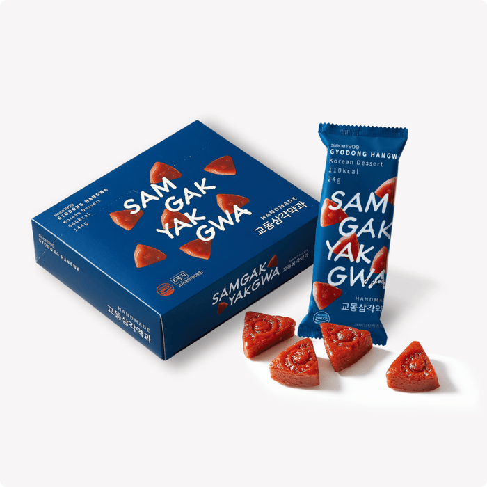 韓国伝統菓子の代表的なアイテム「薬菓(ヤッカ)」伝統的な製法で作られたコシのある生地でもちもちした食感と甘くて風味豊かな味わいが魅力です。一口サイズで楽しむ手軽な三角形の薬菓が4つ入り。持ち運びしやすいパッケージで伝統のお菓子をモダンにいつでもどこでも気軽に分け合える小菓子に仕上げました。