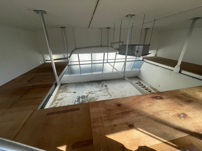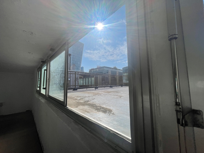 1階路面部分にはシャンデリアショップが入居中。2階(募集区画の隣)には大家さんが住んでおり、外観は住宅色が強めです。2階部分は最後の写真のようにスケルトン天井に蛍光灯が設置されています。3階に上がると外観からはとても予想できない3.8mの天高にロフトもついているというなんとも面白い構造です。ロフトへつながる階段もあり人が乗れるほどの耐久性があります。ロフトを含めると実質3フロア使用できます。構造に関わる鉄骨以外は撤去可能です。そしてロフトに上がってみると窓から屋上が、、、!?