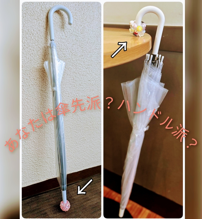 傘のハンドルや先端に装着することで、ビニール傘が瞬時に個性的なアイテムへと変わります。デコレーションと機能性を兼ね備えたアクセサリーです。