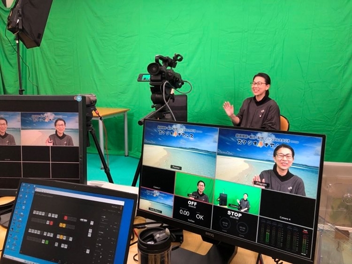 スタジオの広さを選ばないクロマキー合成の特徴を生かしたシンプルでミニマム、使いやすいスタジオが完成しました。