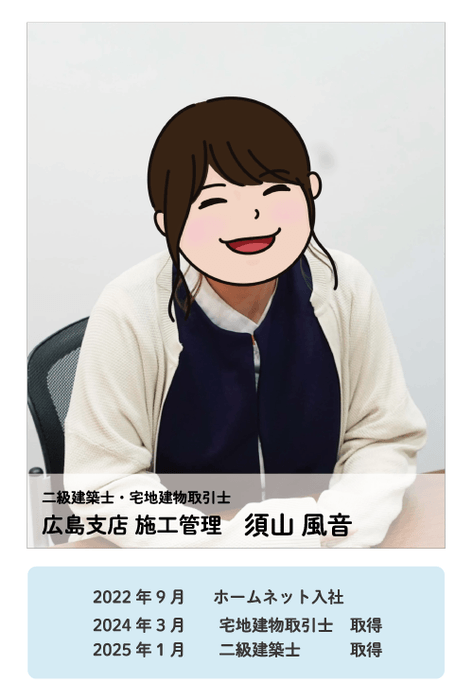 今回のインタビューでは、二級建築士と宅建士のダブルライセンスを持つホームネットの須山さんにお話を伺いました。