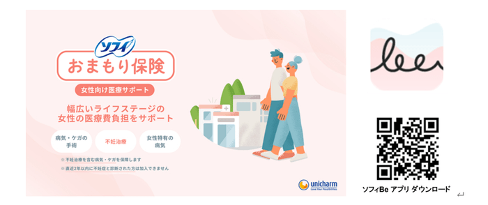 ユニ・チャーム株式会社(代表取締役 社長執行役員:高原 豪久)は、生理管理アプリ『ソフィBe』から申し込み可能な、少額短期保険「ソフィ おまもり保険 女性向け医療サポート」(引受少額短期保険業者:アフラック少額短期保険株式会社)の取り扱いを、2024年11月26日より開始することをお知らせします。