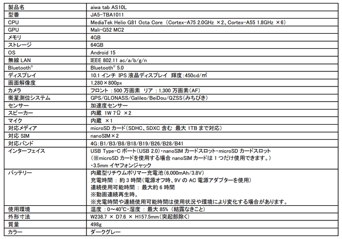 “aiwaより、ビジネスもエンタメもこなすSIMフリータブレット3製品が登場”【aiwa tab AS8L-2】【aiwa tab AS10L】【aiwa tab AS11L-2】本日8月5日より販売開始!