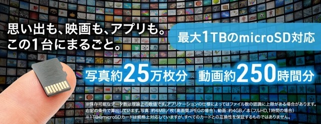 microSDは最大1TBまで対応しているため、お気に入りの動画をダウンロードしておけばオフラインでも楽しめます。写真や自分で撮った動画もたっぷり保存できるので、使い方は自分次第です。