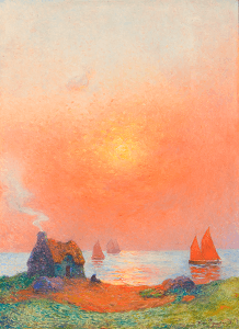 ブルターニュで生まれた絵画様式がパリに伝わり、影響を与えた一方、ブルターニュの画家たちにとってもパリの美術動向は無視できないものでした。本章では、ブルターニュに拠点を置き、黒を基調とする画面によってパリ画壇で注目を集めた画家グループ「バンド・ノワール(黒い一団)」や、点描によって鮮やかな色調を生み出す新印象派、フォーヴィスムやキュビスムの前衛的な様式など、画家たちが追い求めた多様な表現によりブルターニュの風景や人物を描いた作品をご紹介します。