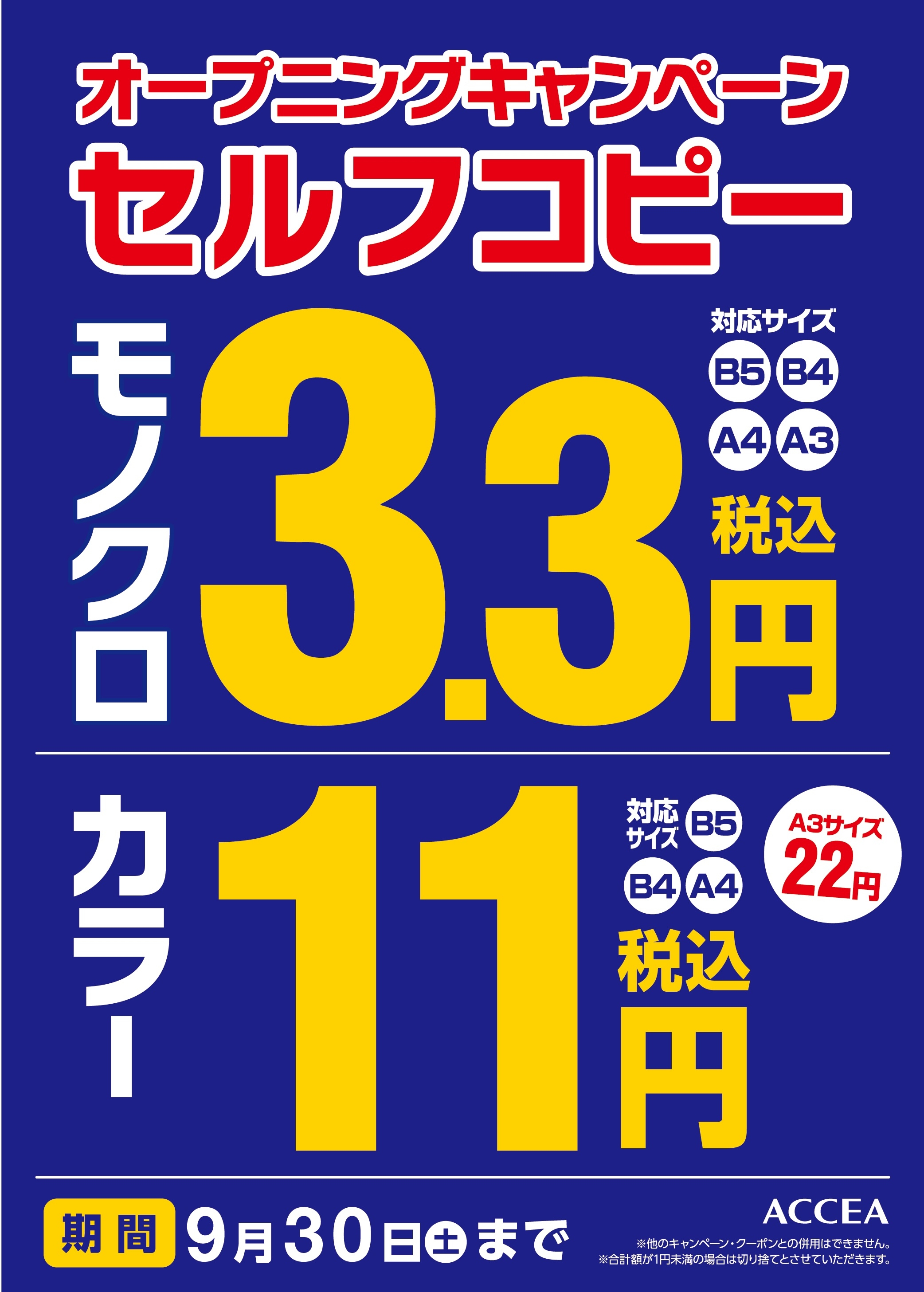 ■オープニングキャンペーン開催 セルフコピーが特別価格に!