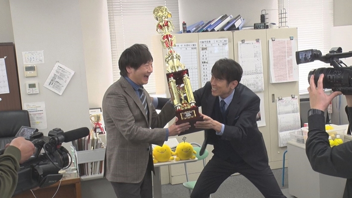 グランプリの報告は、なんと珍定委員長・原田泰造さんが、トロフィー授与だけのために、極秘サプライズで広島ホームテレビに潜入!