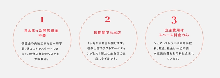 これから飲食店をはじめたい開業希望者は、「シェアレストラン」サイトから、飲食店やバー・レストラン・カフェなどの空き時間帯を検索し、好みに合う地区の店舗を月額定額で間借りすることができ、投資をせずに低リスクで飲食店を開業することができます。また、飲食店オーナー様は、保有店舗の空き時間の有効活用し収益化することで、より安定的な飲食店経営が可能になります。本サービスは、飲食店を通じ「新しい仲間の募集に取り組みたいオーナー様と、低リスクで飲食店を開業したい利用者」をマッチングするプラットフォームです。