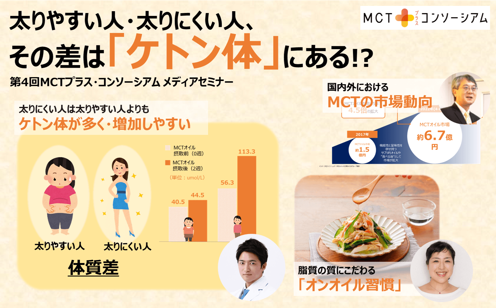 <「MCTプラス・コンソーシアム」第4回メディアセミナー開催> 太りやすい人・太りにくい人、その差は「ケトン体」にある!?