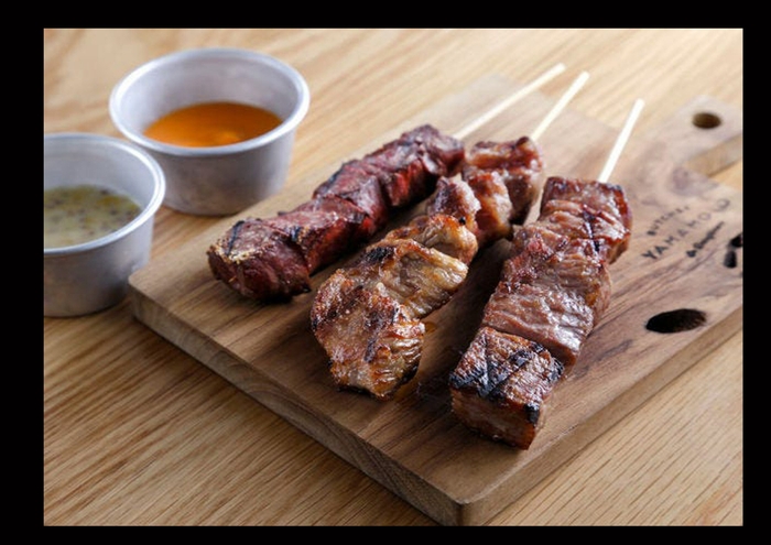 厳選されたブラックアンガスの赤味ローストとバラをセットにした牛串です。