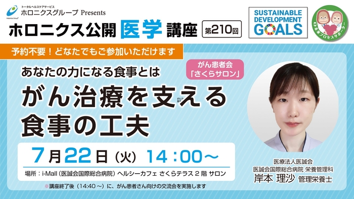 7/22『あなたの力になる食事とは がん治療を支える食事の工夫』/第210回ホロニクス公開医学講座