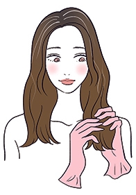 髪だけではなく肌や爪にも着色しやすいので、必ず手袋をお使いください。また、顔や肩につかないように塗布し、ついてしまったときは時間をおかずに洗い流してください。