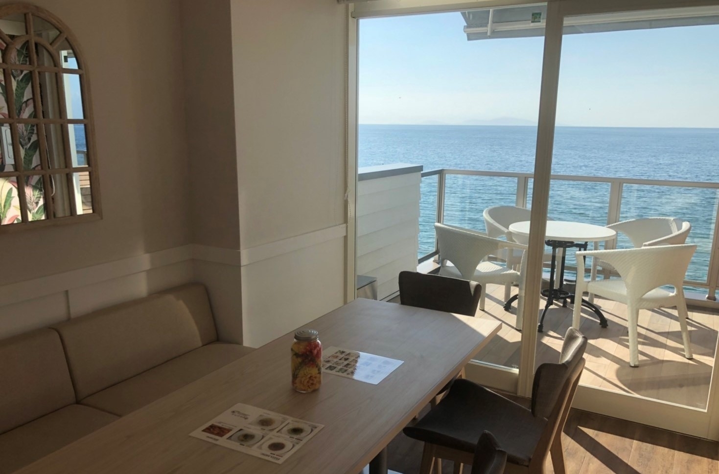 1階のはなれの個室には食後にゆっくりくつろいでいただける海辺を眺望できるソファ席をご用意。