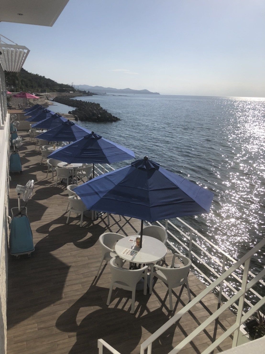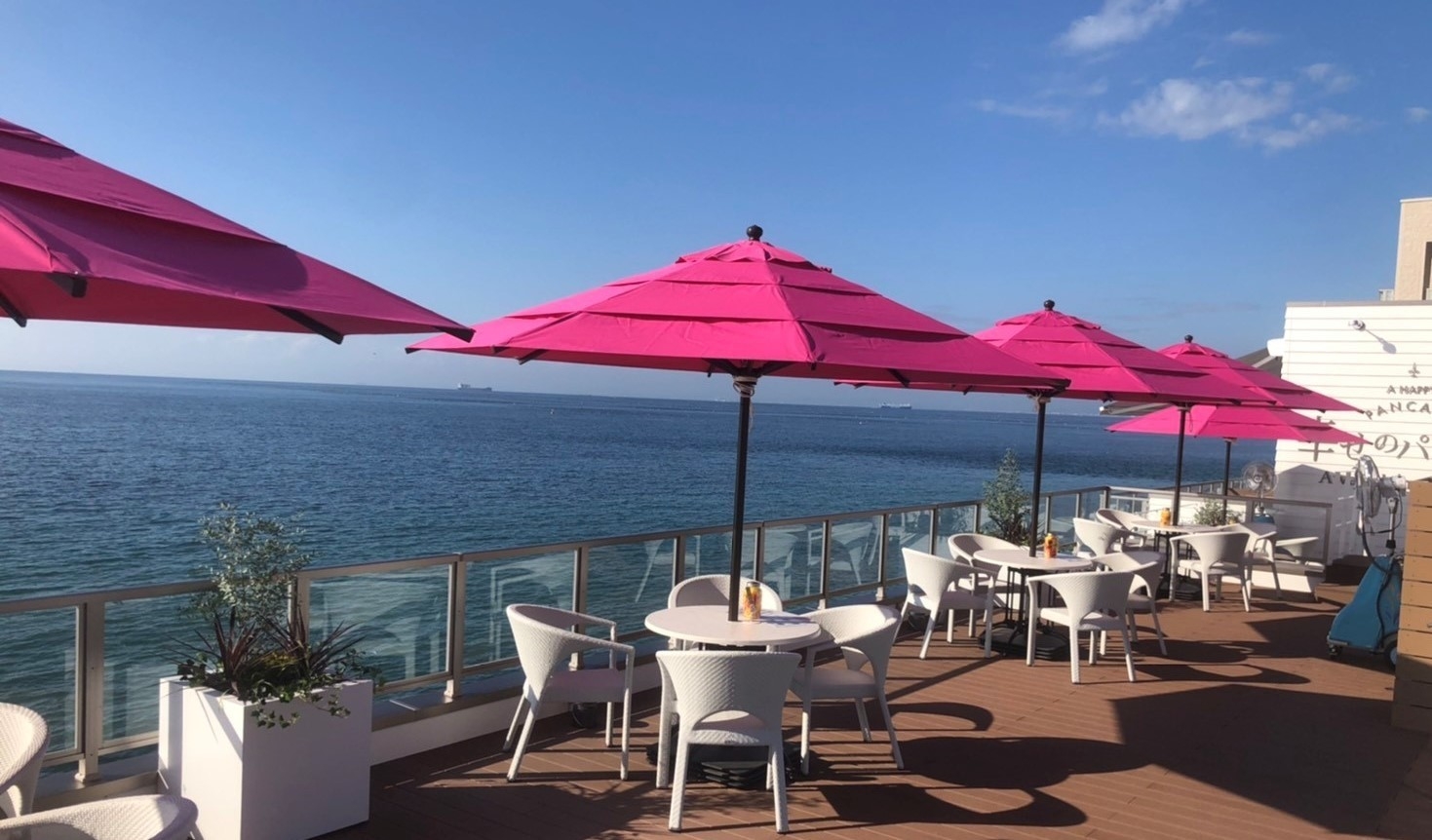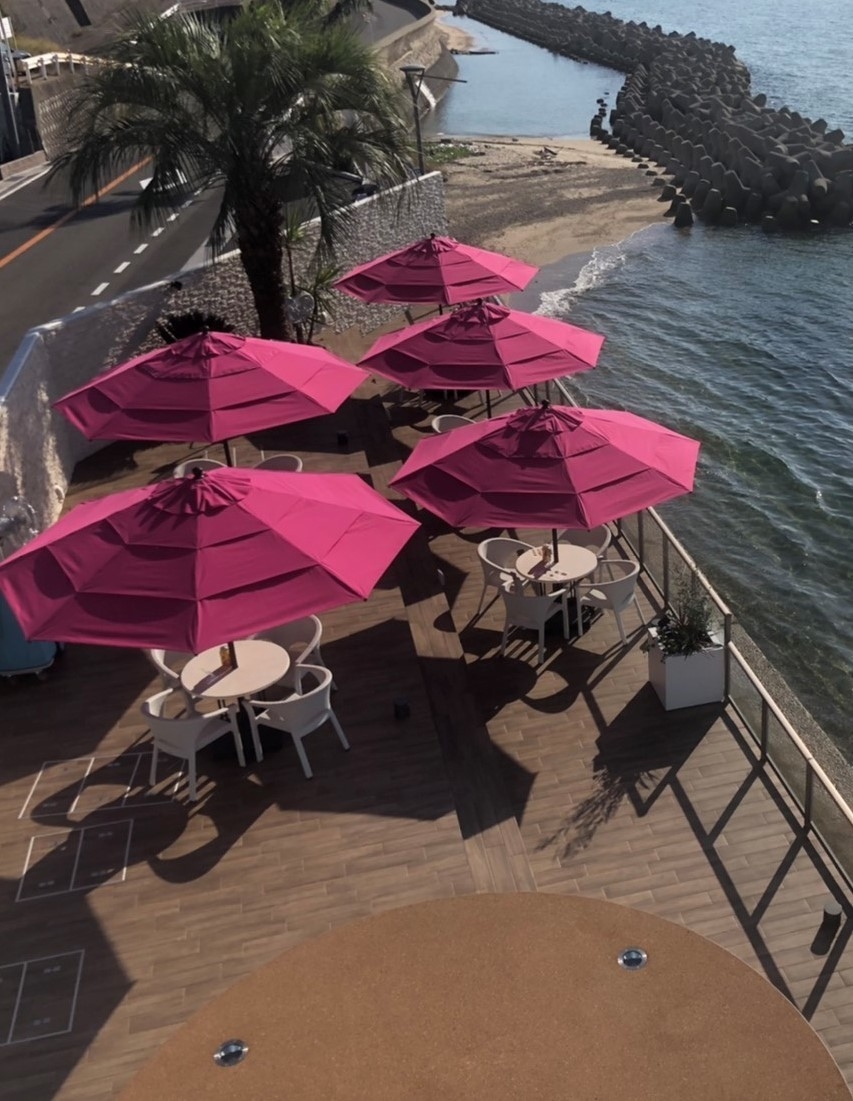 新エリアのテラス席は従来のテラス席より更に海を間近に感じていただけるレイアウトに設置しており眼下のプライベートビーチの砂浜にも自由に降りていただける専用階段もご用意しております。