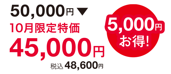 10月限定特別価格 45,000円(税込48,600円)