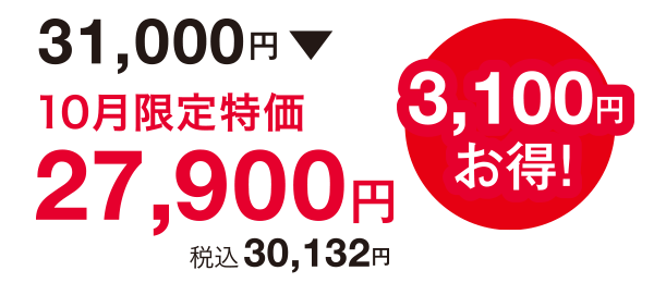 10月限定特別価格 27,900円(税込30,132円)