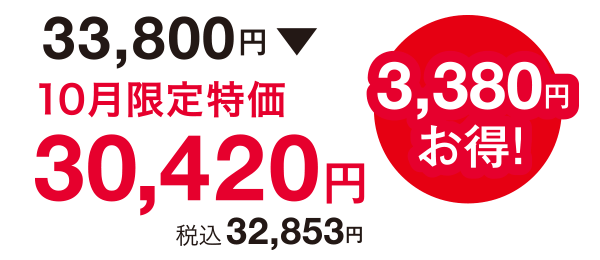 10月限定特別価格 30,420円(税込32,853円)