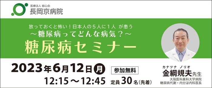 長岡京病院、糖尿病セミナーを6/12(月)に開催 「放っておくと怖い!日本人の5人に1人が患う、糖尿病ってどんな病気?」