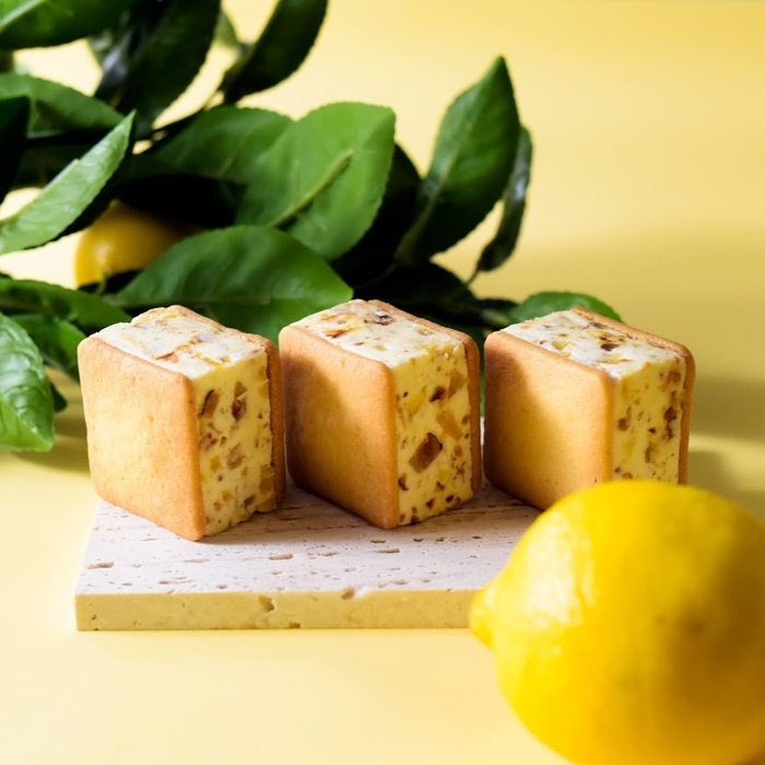 国産の完熟レモンを自家製コンフィにし、イタリア・ピエモンテ産ヘーゼルナッツのキャラメリゼと合わせました。甘さを控え、レモンの酸味を生かした夏にぴったりのスイーツです。
