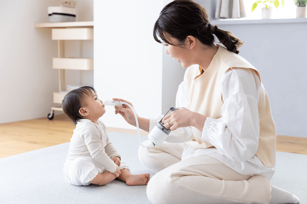 赤ちゃんが嫌がる大きな音がしないので、こっそり吸引できます。真空ポンプのパワフルな吸引力を実現し、奥の鼻水までしっかり吸引できます。