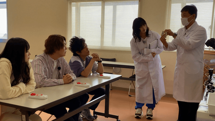 沖ちゃん(沖侑果)&舞Q(中村舞)コンビを圧倒するポジティブトークが炸裂しつつ、ミクロの世界を顕微鏡を通して学びます。
