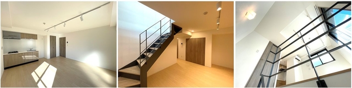 間取りについては4タイプを用意しており、1Kタイプでは居室を横長に配置、地上階1LDKタイプではキッチン壁付けにし、居住空間をより広く確保することで、入居者様がお部屋のレイアウトをしやすいようこだわって設計しています。