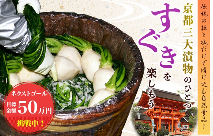 コロナ禍で落ち込んだ需要をクラウドファンディングで支援 「伝統の技と塩だけで漬け込む自然食品!京都三大漬物のひとつ 『すぐき』を楽しもう」 “ネクスト”ゴール挑戦中!