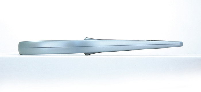 机などに置いた際、柄の部分が浮き上がるようにデザインしています。「置いたルーペはつかみにくい」 というお客様の声から生まれた工夫です。