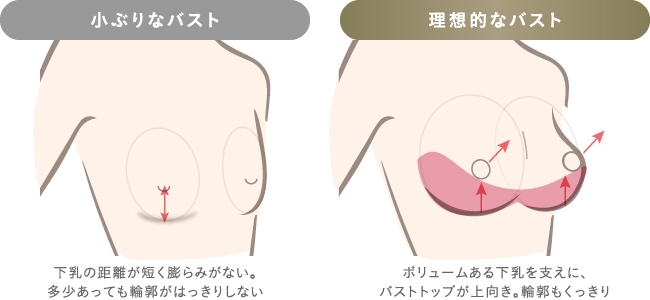 2つの方法をご用意することにより、もともとのバストの状態や仕上がりイメージに合わせて、より適した方法を選択することが可能です。
