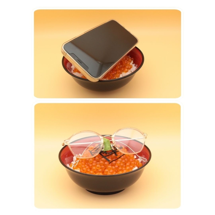 イクラの目を一粒ずつ描き込む作業が、作りごたえのあるポイントです。完成後は、スマホスタンドやメガネスタンドとして実用的に活用できるため、自分用にはもちろん、プレゼントとしても最適!
