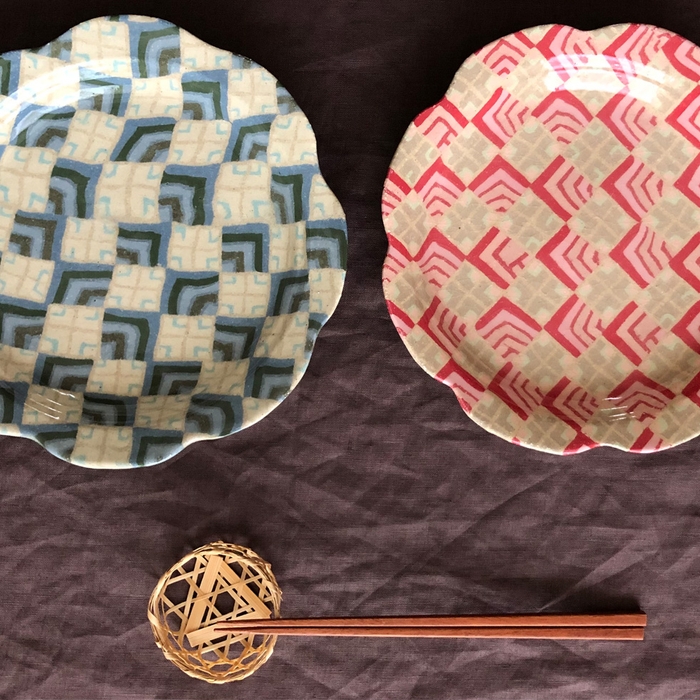 何色もの色粘土で模様を作り、各模様パーツをノリをつけながら大きな粘土のかたまりに仕上げる技法「練り込み」を用い、沖縄の琉球かすり・青森のこぎん刺しなどの模様をモチーフにしたうつわを制作している。電子レンジ、食洗機での使用が可能。9月23日(土)には、「練り込み」技法によるうつわ作りワークショップも開催する。