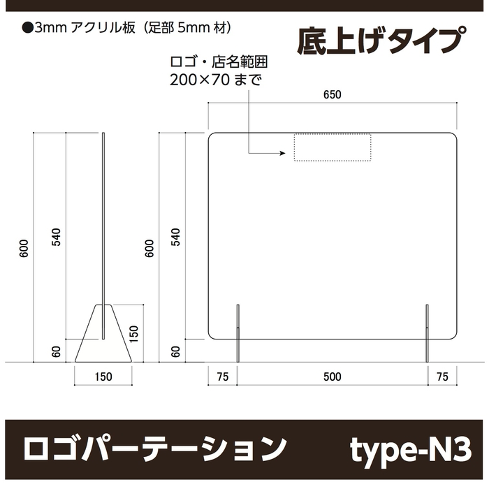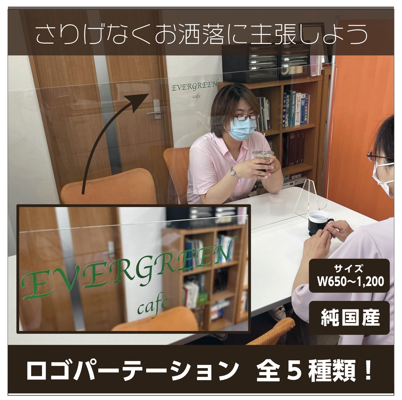 コロナ禍の中で、少しでも安心して過ごせる場を提供しようと頑張っているお店が沢山あります。そんなお店の最前線を応援すべく我々にも何か出来ることはないかという想いから、これまでの技術と設備を生かした感染対策商品の開発、製作に乗り出しました。特にパーテーションの需要が高まった今、置くだけ簡単設計はお客様にも大変ご好評頂きました。そんな中、「パーテーションにオリジナル感を出したい」「無機質な仕切りをお洒落なものにしたい」などのご要望を受け、この度“ロゴ・名入れ可能なアクリルパーテーション”の販売を開始することとなりました。