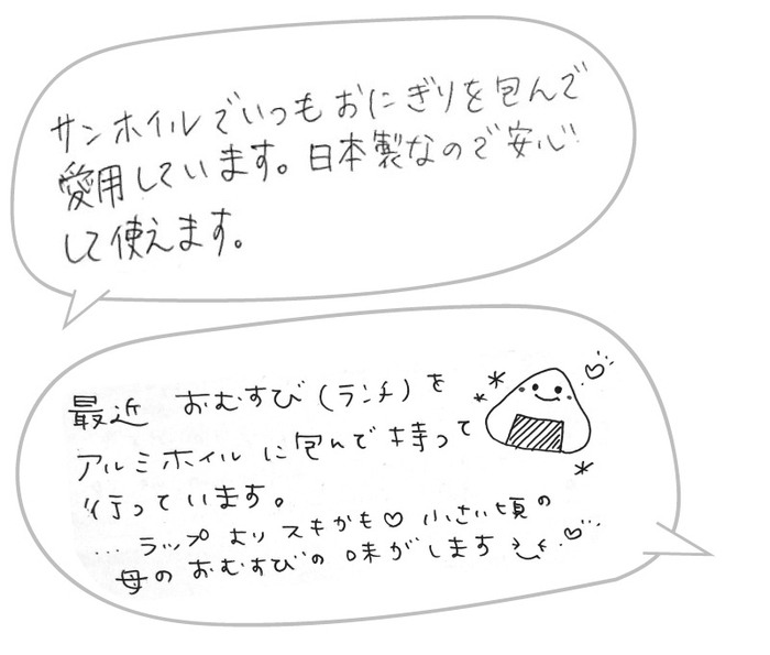 おむすび=おにぎりを包むときは、アルミホイルがおすすめです。