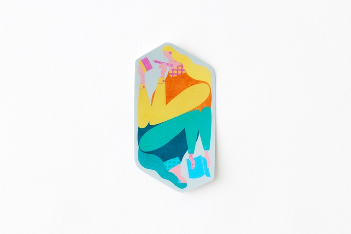 俳句を「詠む」こと、「読む」ことは表裏一体であることを、楽しいイラストで表現したステッカー。