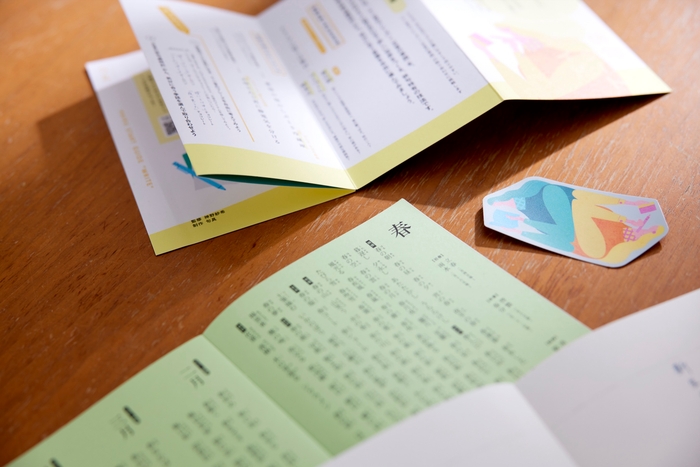 そんな、俳句の「詠む」「読む」それぞれのあそびかたのコツをコンパクトにまとめたのが、この蛇腹スタイルのリーフレット「俳句スタートガイド」です。おもてに「詠む」、うらに「読む」についてガイドしています。どちらも俳人の神野紗希先生の監修です。