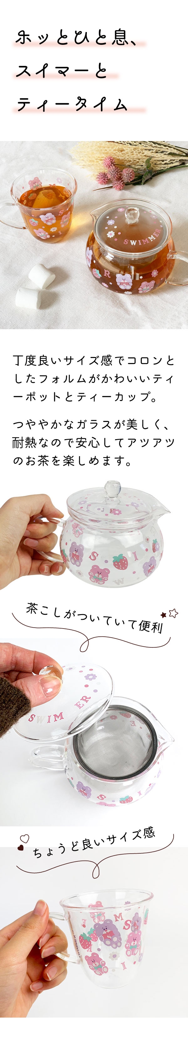 SWIMMER スイマー ホッとひと息セット 耐熱ガラスポット・耐熱ガラスマグ
