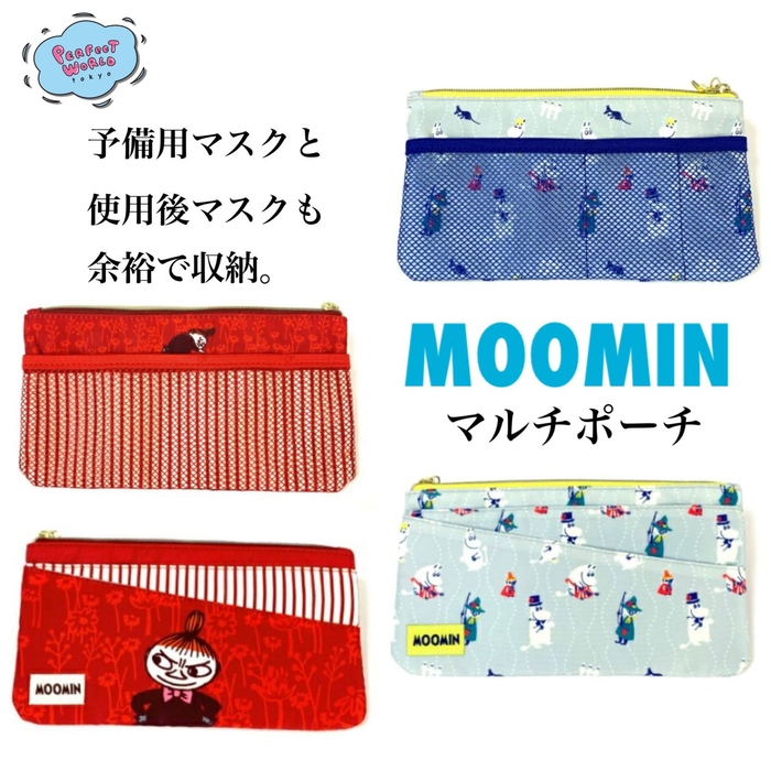 マスクケースの進化版としてご紹介したいムーミンのマルチポーチ。今回は淡い色合いが優しいムーミンとドヤ顔のミィが可愛いレッドカラーの選べる2種類です。「バッグの中の小物をひとつにまとめたい!」という方にも必見のアイテムですよ♪