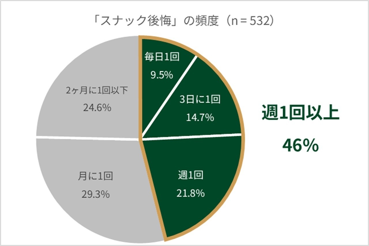 ・“スナック後悔”を週1回以上感じる人は約46%。日常的な“軽い罪悪感”として定着しています。