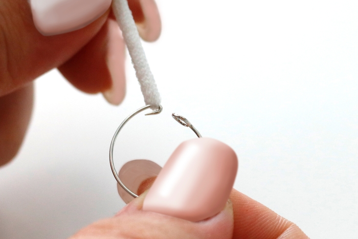 クロスフォーが開発した【Mask Ring】は、先端が針のような形状になっているのでマスク紐に刺すことで≪しっかりと固定≫することが可能。