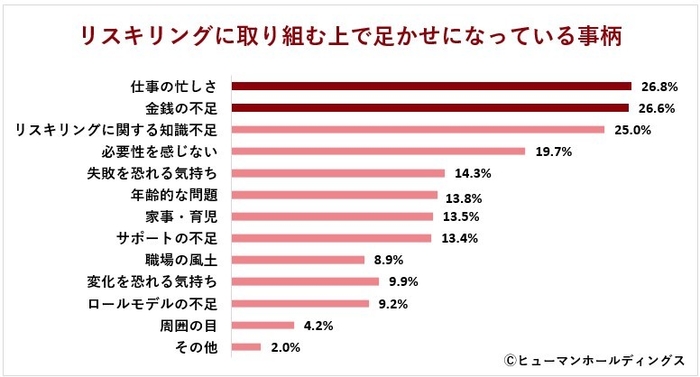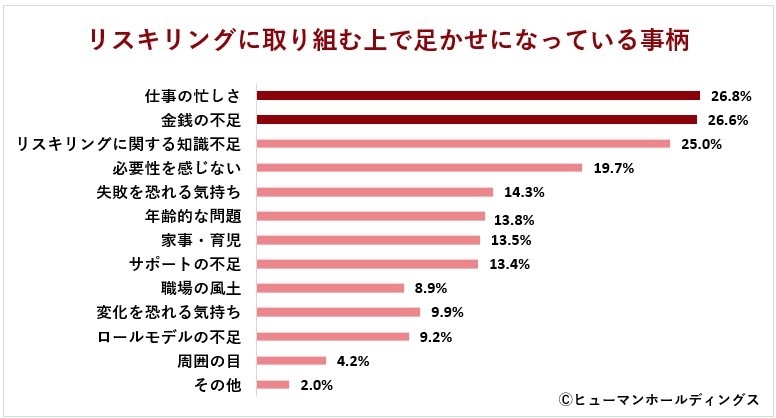 Q9. 「仕事の忙しさ」と「金銭の不足」がリスキリングに取り組むにあたり足かせになっている