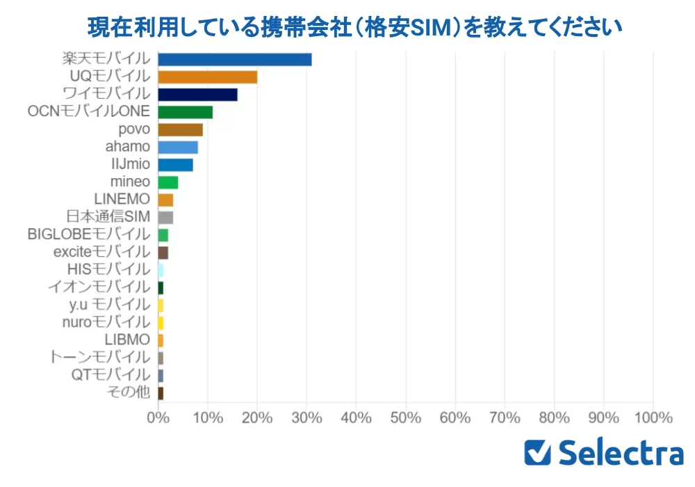 一番利用者が多かったのは、現在「最強プラン」で話題の楽天モバイルで、利用者は全体の31%でした。