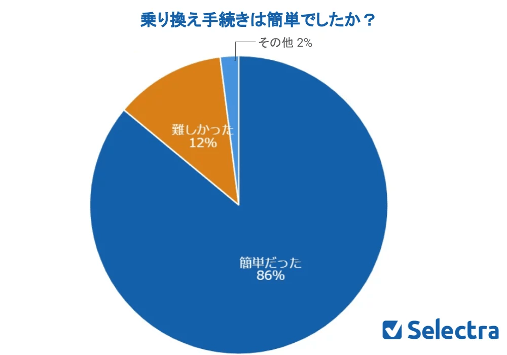 今回のアンケートでは、86%の人が「MNP乗り換え手続きはかんたんだった」と答えています。